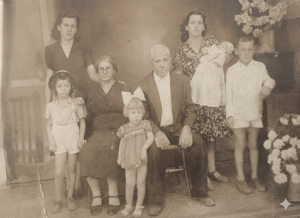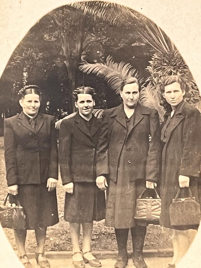 Se Rocco trouxe o sobrenome, foi Domenica Zapone, minha avó, quem transformou o ofício em legado. Na foto ao lado, ela segura em seu colo minha mãe, Abigail, cercada pela família que aprendeu que 'o avesso de uma roupa deve ser tão bonito quanto o lado direito'.